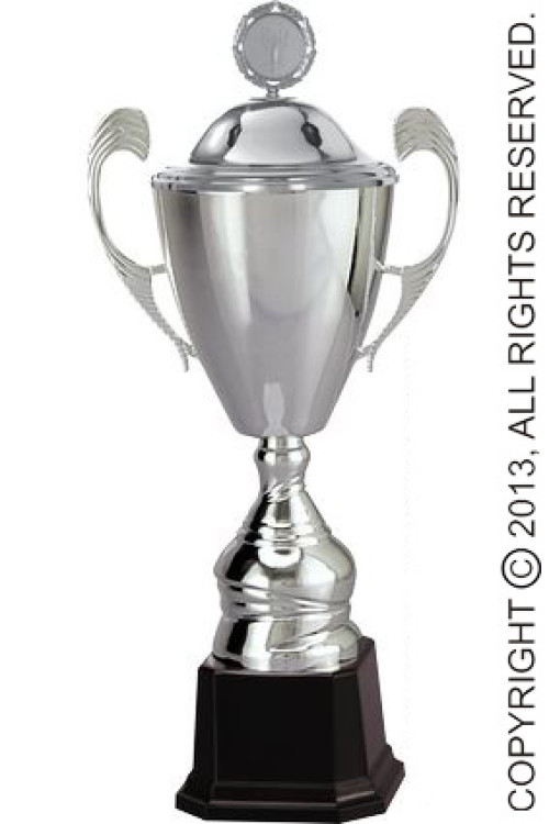 Puchar metalowy srebrny z przykrywką