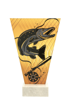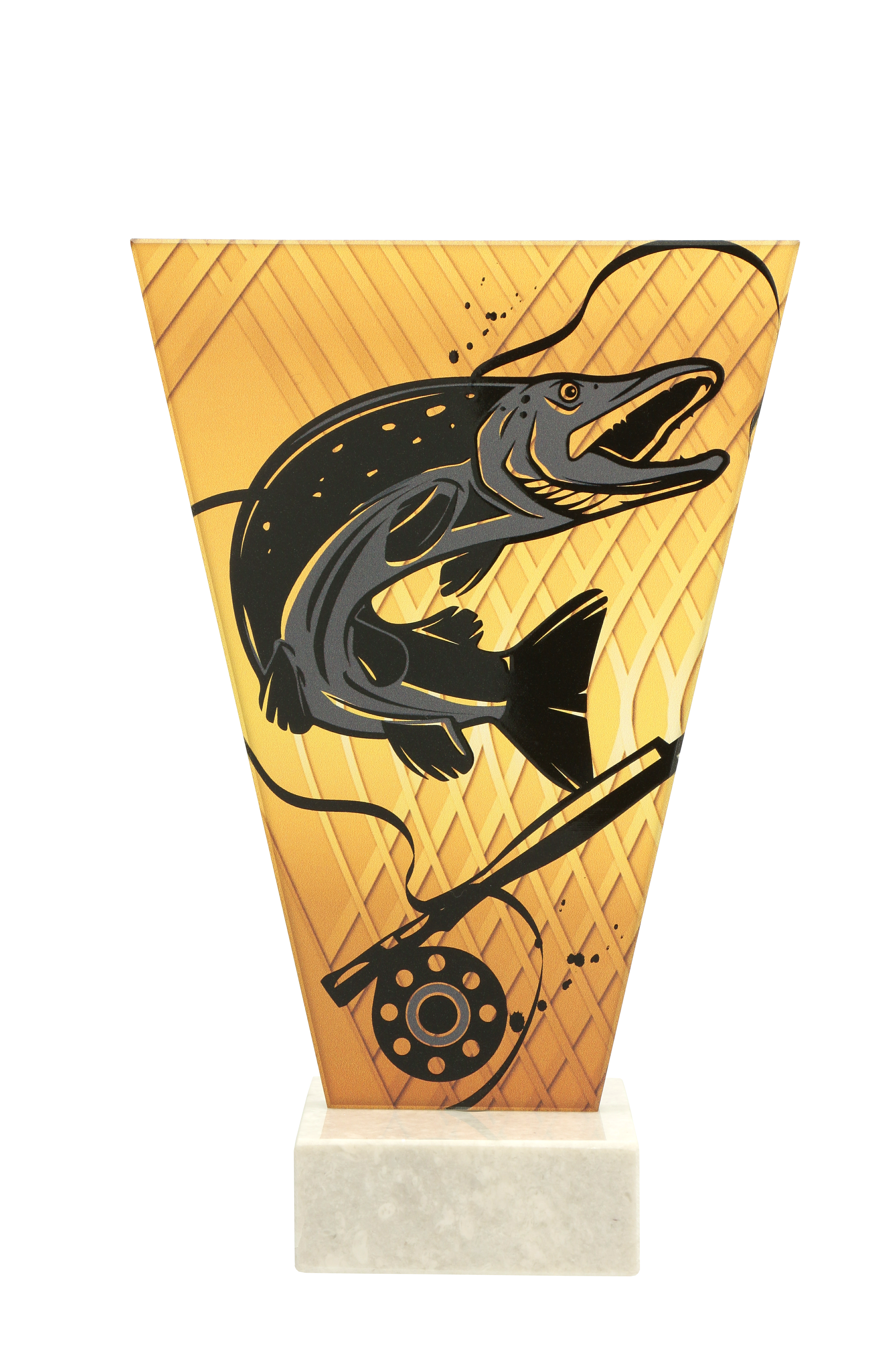 Monochromatyczne trofeum szklane na podstawie marmurowej - wędkarstwo SZCZUPAK