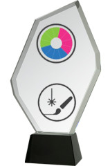 Trofeum szklane z nadrukiem kolorowym LuxorJet, grawerowaniem oraz wypełnieniem farbą